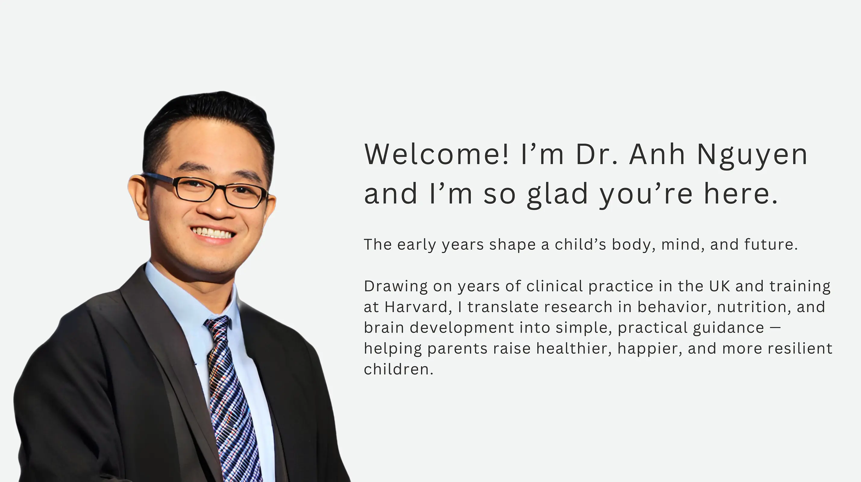 Hello, I’m Dr. Anh Nguyen, a clinician-scientist practicing in the UK and trained at Harvard Medical School. My work sits at the crossroads of behavioral science, nutrition, and brain development — with one mission: to help parents raise healthier, happier, and more resilient children.